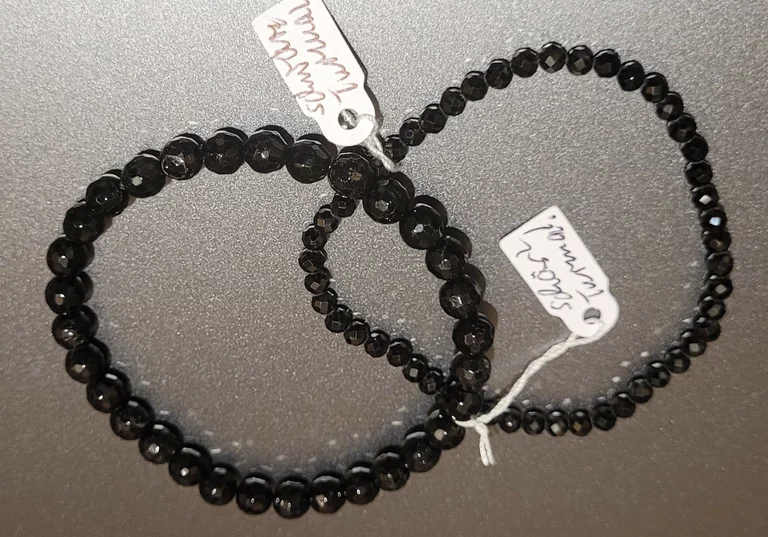 Schwarzer Turmalin - auch Schörl genannt - (endlich) mal wieder als facettierte Kugel-Armbänder in 4 und 6mm.